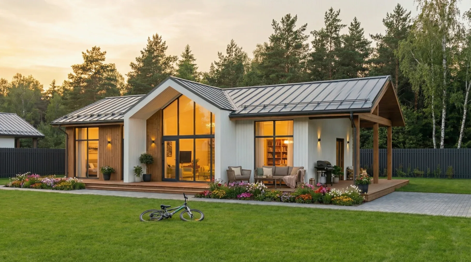 Полностью готовый дом за 3-4 месяца. Сборка каркаса — всего 2-3 недели.